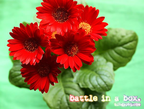 Vor knapp drei Wochen hat die Miez mir Gerbera im Blumentopf mitgebracht und SIE LEBEN IMMER NOCH! Ich kann es selbst kaum glauben. Mein Weihnachtsstern war ja nach knapp zwei Wochen nicht mehr als ein Weihnachtsstumpf, insofern freue ich mich jeden Tag über die schönen roten Blüten. XD