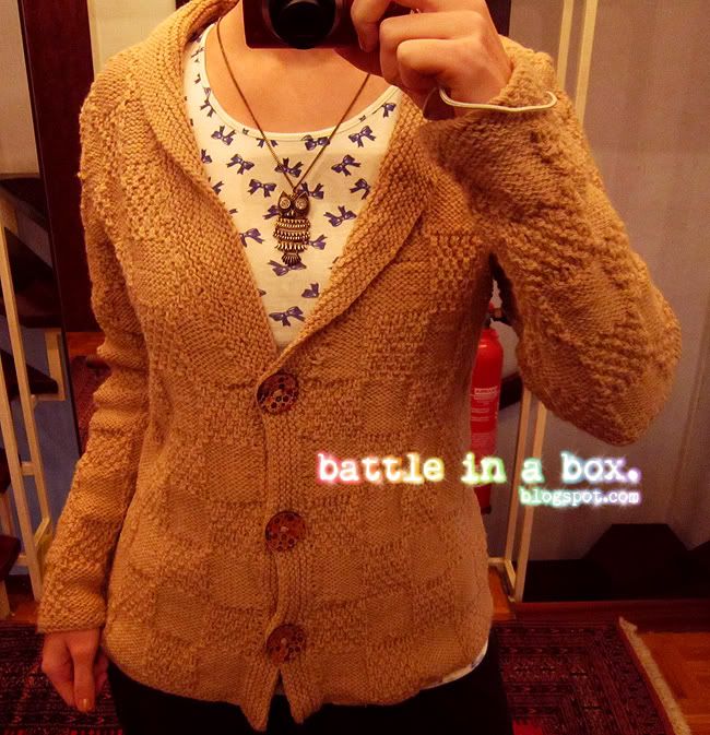 Hier nochmal die Strickjacke (der Caaaardigäään!) super professionell mitten im Flur und in den Spiegel fotografiert von mir in Szene gesetzt.